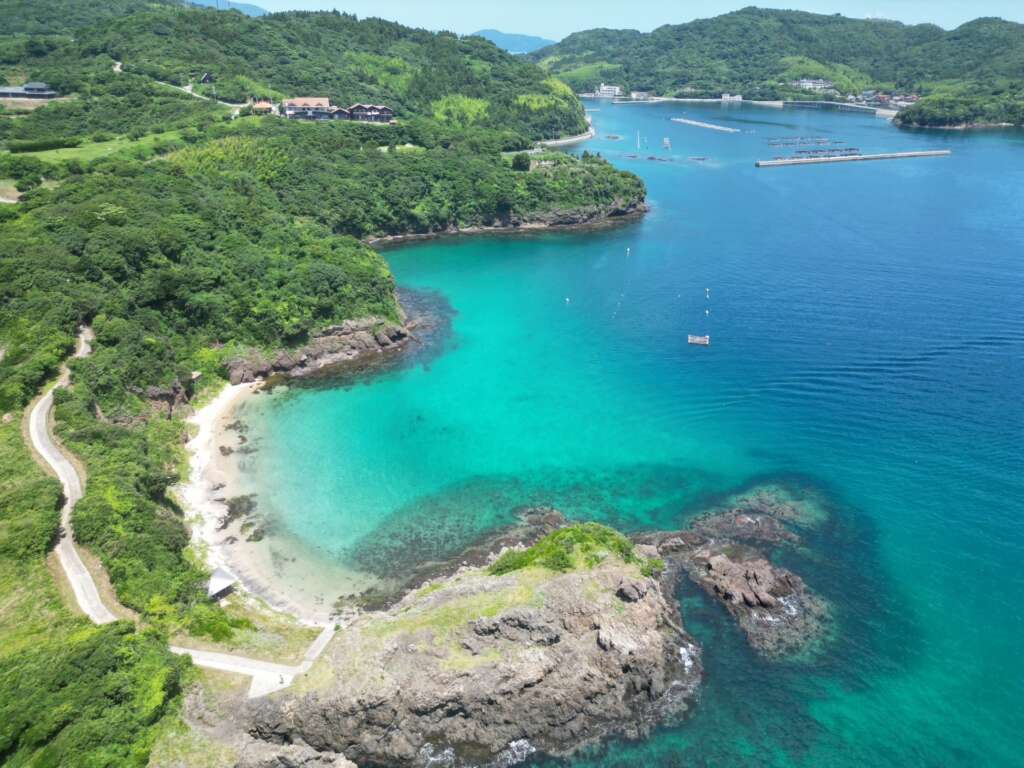 ホテルから徒歩で約10分の場所にある「長尾海水浴場」と
